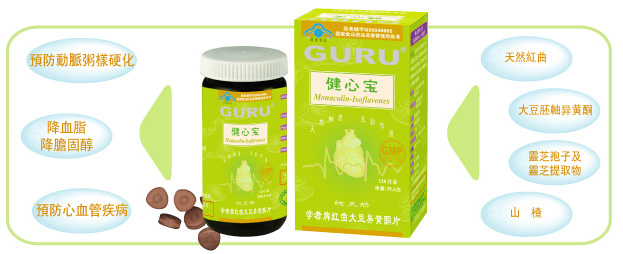 特点二:每片健心宝含有15毫克的天然大豆钵黄酮及1毫克的天然红曲素,降脂作用更明显。